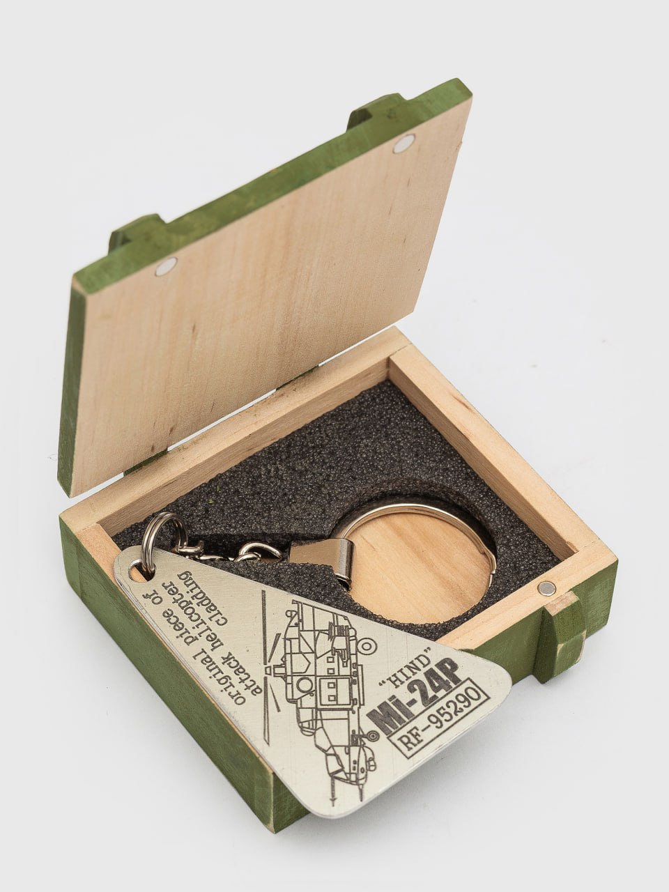 ▪ Постачається у подарунковому дерев’яному боксі з пінною вкладкою, що надійно фіксує брелок.