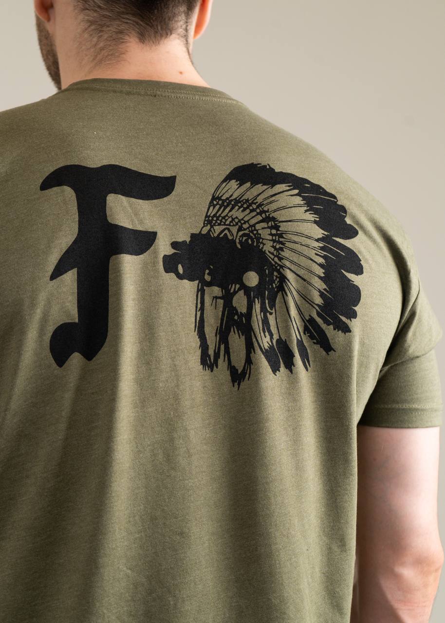 The COMANCHE TEE in Mil Green is a tribute to the indigenous peoples of America and their warrior spirit. The back of the T-shirt features a symbolic pattern: the letter “F” combined with a Comanche headdress - a traditional feathered headdress that symbolizes courage, honor and strength. The chest features the Forward Observations Group branding, which emphasizes the authenticity and uniqueness of the brand.