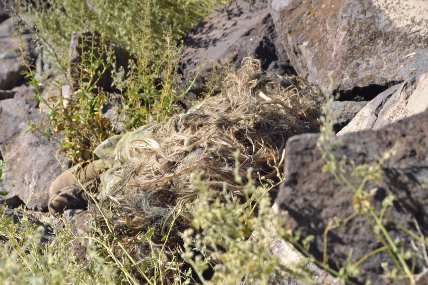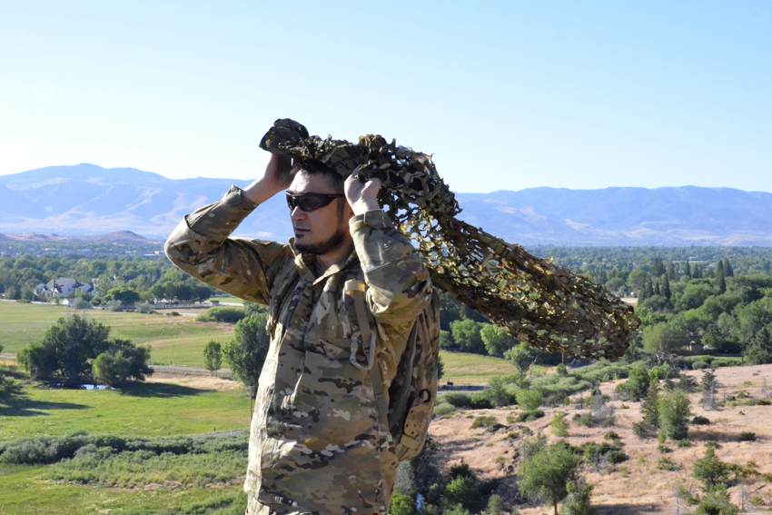 The double back panel of the camouflage cape can be used to camouflage the shooter along with a rifle or other large equipment.