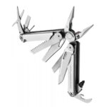 The handles are ergonomically shaped. Due to this, the multitool fits perfectly in the palm of your hand and is really comfortable to work with. In total, the manufacturer has provided 17 tools. Among them are pliers, opener, wire cutters, knife, screwdrivers, wood saw, file and scissors. You will receive everything you need for further use of the product. The tools can be removed with one hand. Due to this, it is possible to quickly activate the multitool. Fuses are provided in the design, they exclude accidental closing. In addition, the customer receives a nylon storage pouch.
