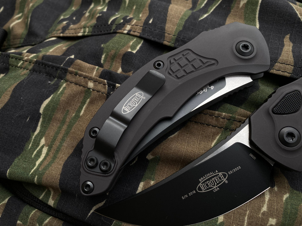 ● Blade. The blade of the Micro-268A-1T Brachial S/E is made of high quality stainless steel such as CTS-204P or M390. It can have a single-sided sharpening with a straight or slip grind;