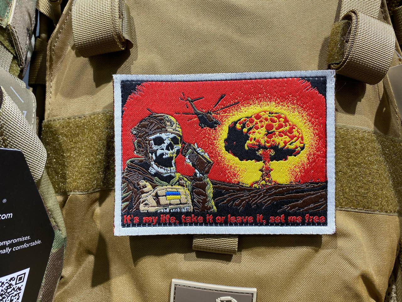 The patches from the military ammunition manufacturer Hoffmann have an expressive and interesting design. One of the patches depicts Death with a walkie-talkie and a spectacular explosion in the background, and below the image you can see the inscription: "It's my life, take it or leave it, set me free." This design evokes associations with warfare and the determination to survive in the most difficult conditions.