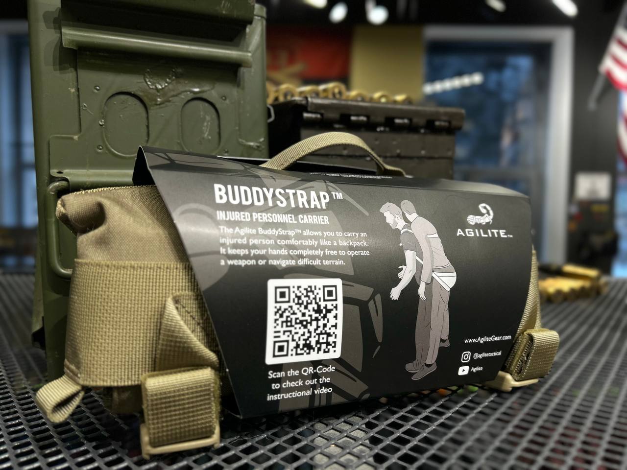 Сьогодні багато людей носять з собою аптечку для надання першої медичної допомоги, але ті, хто носять BuddyStrap™, мають можливість евакуювати свого побратима у безпечне місце.