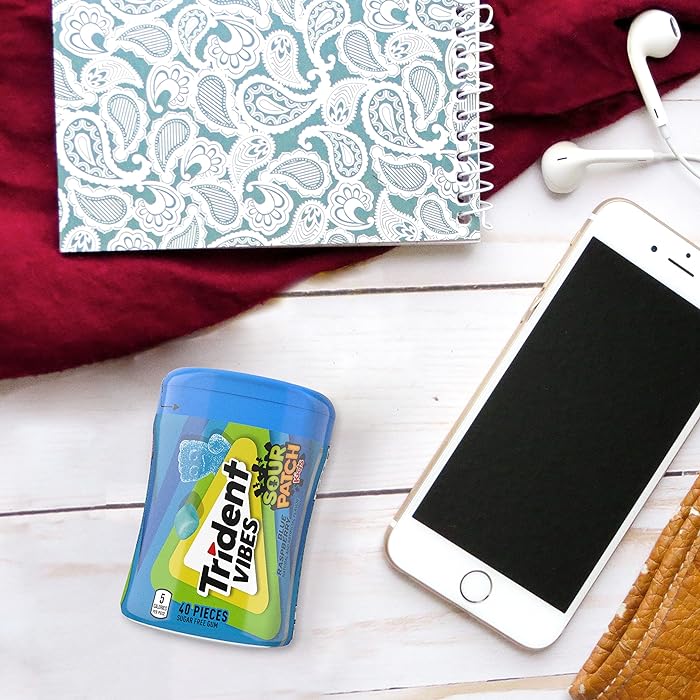 Instead of packs of chewing gum, Trident Vibes flavored gum comes in a convenient bottle that makes it easy to store almost anywhere. Keep a bottle of Trident Vibes SOUR PATCH KIDS gum in your desk, purse, car, travel backpack, or anywhere you might want a piece of fruity gum.