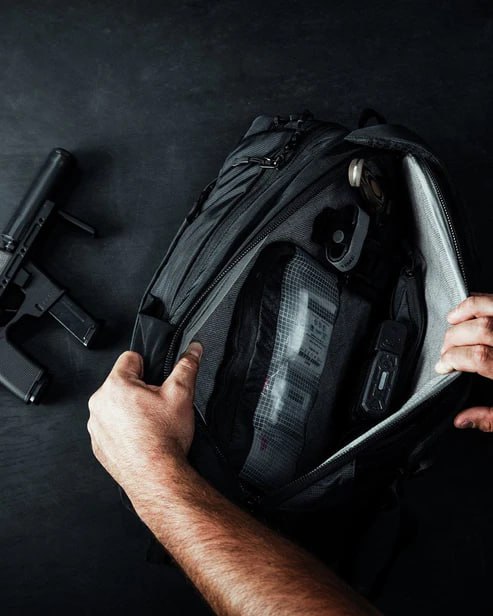▪ Приховане носіння: ззаду відсіку - спеціальна кишеня для короткоствольної зброї, в основному відділенні - швидке кріплення для карабіна або ПП (до 46 см).