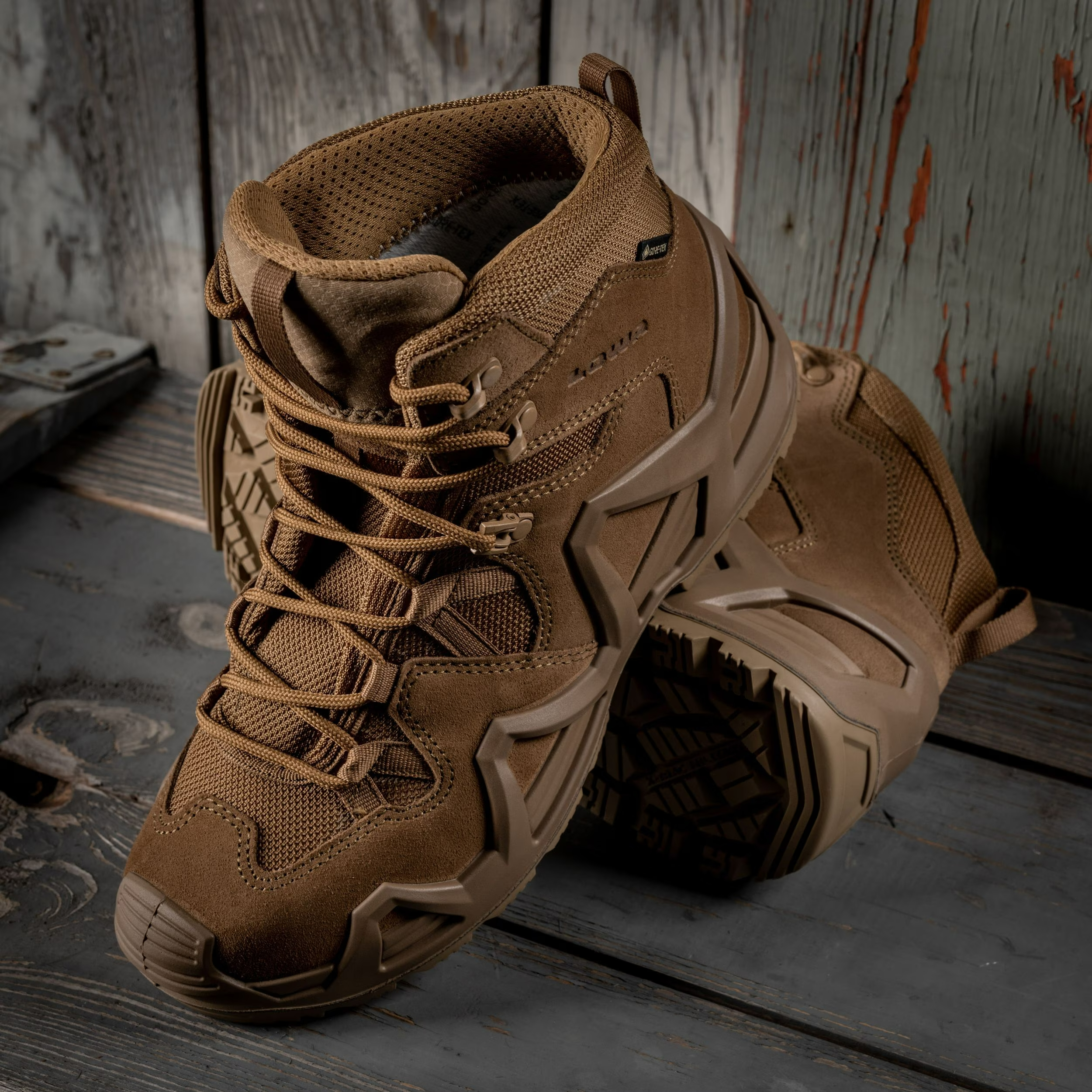 Средняя высота обеспечивает необходимую поддержку во время быстрого спуска по веревке и позволяет полную свободу движений во время ближнего боя. Верх изготовлен из водоотталкивающей замши, устойчивой к разрывам, в сочетании с материалом CORDURA®, который является износостойким и дышащим.