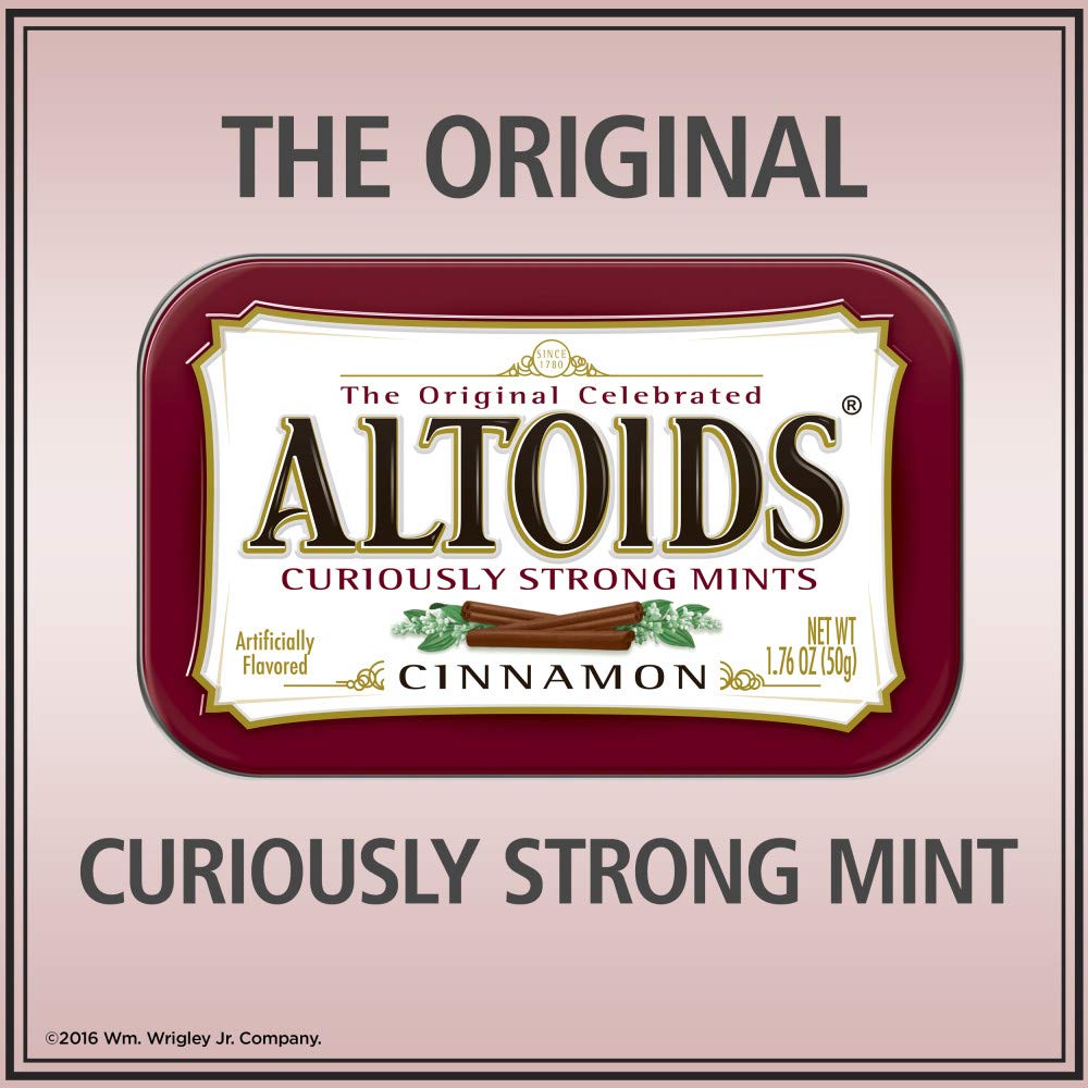 Всегда оставайтесь свежими и готовыми ко всему, что случается на вашем пути, с мятными пастилками ALTOIDS Cinnamon Breath Mints. Эти удивительно сильные мятные пастилки помогут вам чувствовать себя уверенно в любом приключении. Упакованные в карманную жестянку, мятные конфеты ALTOIDS Mints легко брать с собой в дорогу, держать в машине или хранить на рабочем столе.  Где бы вы ни находились, раскусите одну из этих мятных конфет, и вы почувствуете взрыв аромата корицы. Вот в чем заключается удивительная сила мятных освежителей для полости рта ALTOIDS Cinnamon Breath Mints.