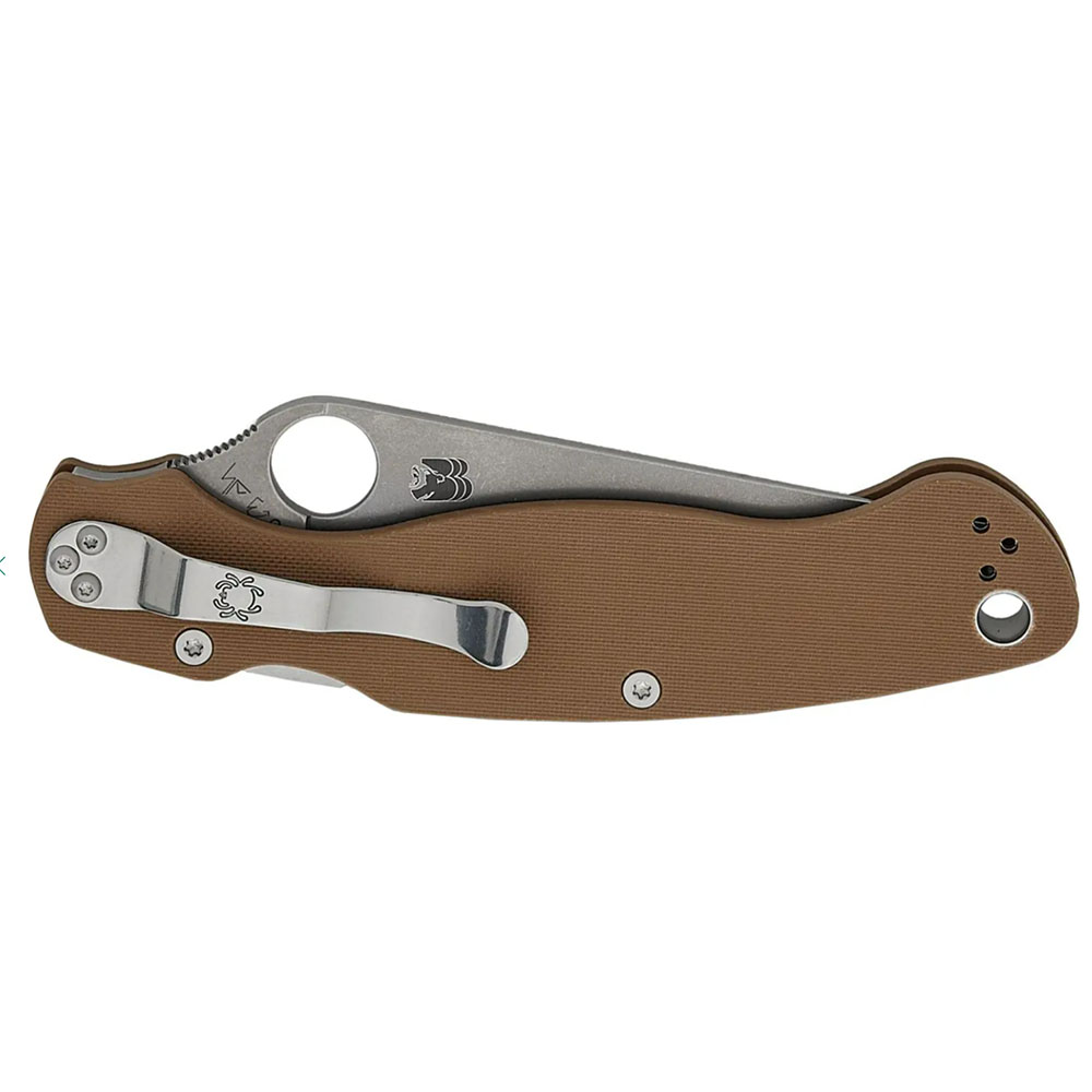 Благодаря фирменной термообработке Шона Хьюстона (Big Brown Bear) сталь розкрывает максимум своих характеристик, а фирменный логотип “BBB” на клинке подчёркивает эксклюзивность серии. Коричневые накладки из текстурированного G-10 (peel-ply) обеспечивают надёжный хват даже в сложных условиях, а обновлённый замок Compression Lock существенно повышает безопасность: минимизирует риск случайного закрытия и выдерживает значительные нагрузки. Четырёхпозиционная клипса позволяет настроить способ ношения под свои предпочтения, а фирменное отверстие Spyderco делает открывание максимально быстрым и интуитивным.