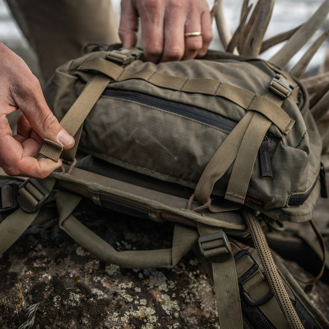 Основа MultiLid™ использует стропу MOLLE для крепления в любом месте с помощью совместимой стропы, но чаще всего используется и рекомендуется крепить в верхней части рюкзака как сумка для быстрого доступа, к необходимым вещам.