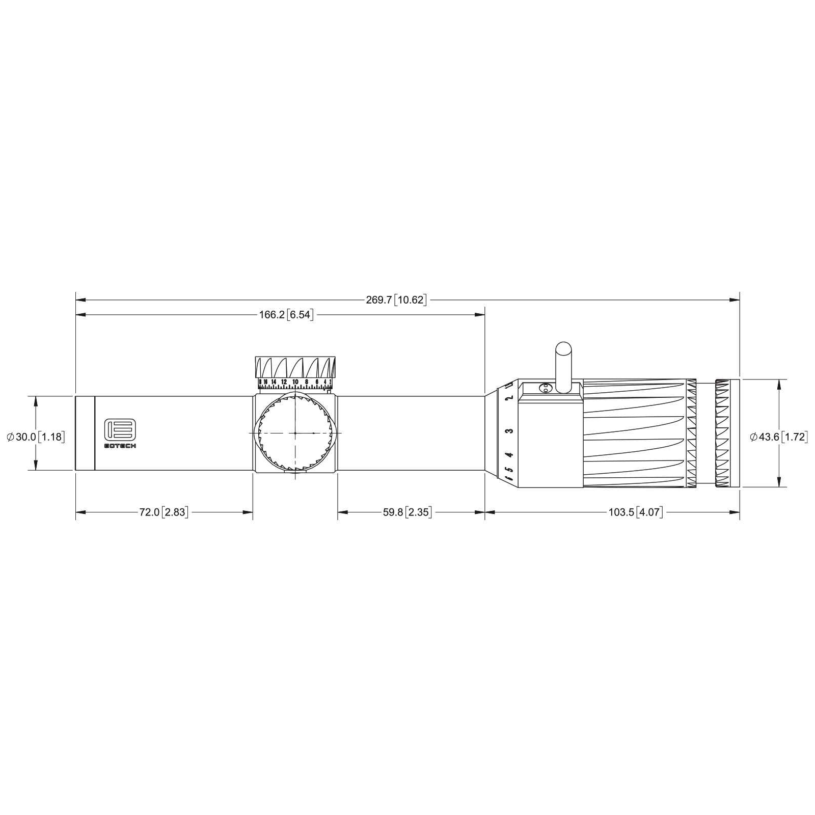 ● Диапазон коррекций за один оборот (щелчок): 15 MIL;