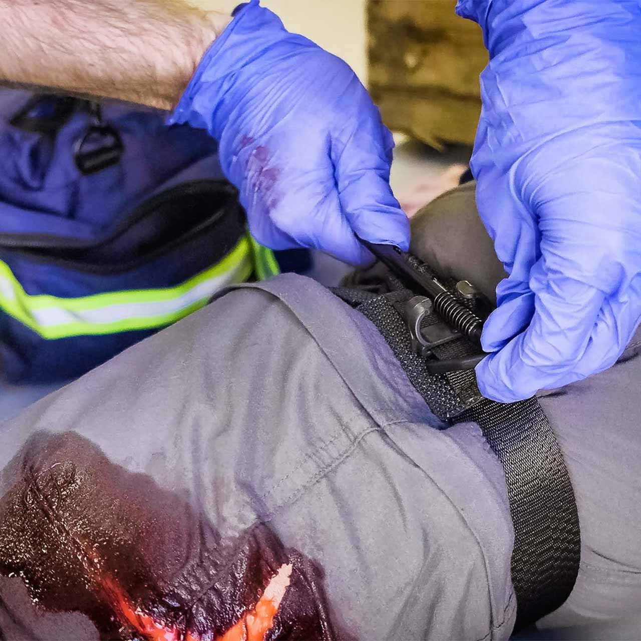 ● Контрастний клин слугує візуальним підтвердженням того, що ви усунули надлишкову слабину з ременя. Це дуже важливий крок для правильного накладання джгута і призводить до зменшення кількості обертів лебідки, необхідних для досягнення оклюзії;